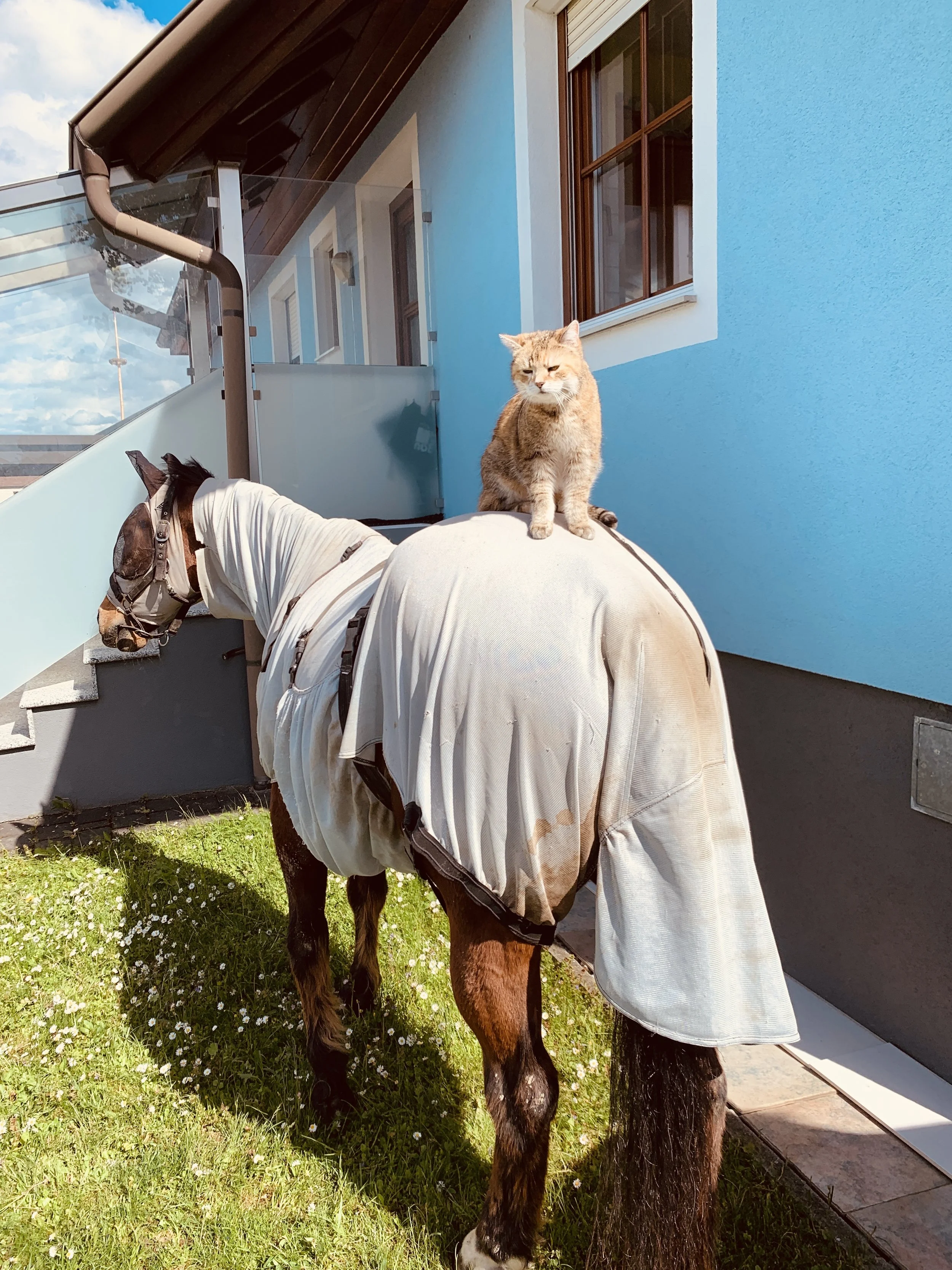 Außerdem engagiere ich mich im Tierschutzverein Rainbowpony. Aktuell leben auch zwei Tierschutzpferde bei mir, die in Not geraten sind und professionell aufgebaut werden, damit sie irgendwann in ein liebevolles Endzuhause ziehen können.