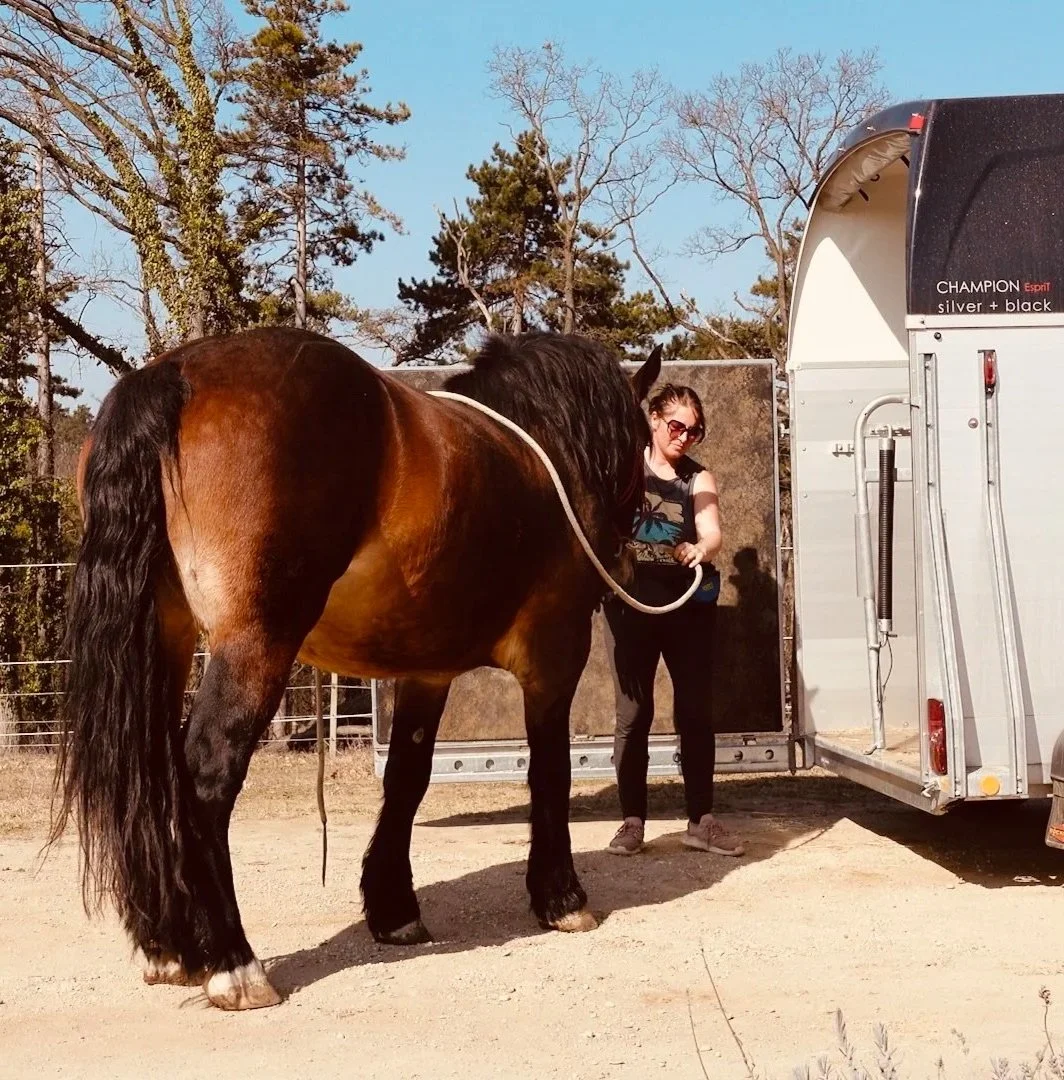Kleinschrittiges, geduldiges Training – meist beginnt es weit außerhalb des Hängers. Gerne begleite ich euch auf diesem Weg und unterstütze Schritt für Schritt.